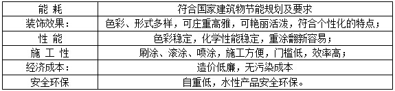 目前, 随着我国经济发展的稳步增长, 城市建设日新月异, 造型独特, 外观醒目的建筑物随处可见, 新建筑物的外立面在选材和色彩方面也越来越丰富, 玻璃幕墙、天然石材、釉面砖、陶瓷锦砖、建筑涂料等。近年来, 随着人们生活水平的逐步提高, 大家对城市居住环境要求越来越高, 我们也渐渐意识到玻璃幕墙存在光污染, 安全性不容忽视, 金属幕墙的避雷性、耐久性也令人担心, 天然石材的荷载、防潮也不容忽视, 釉面砖易脱落有危险。而外墙涂料体重最轻、色彩最鲜艳、安全性最好, 正在逐步得到人们的欢迎。建筑立面上涂饰外墙涂料的优点, 除色彩亮丽丰富外, 建筑负荷小, 价格低、施工简便、工期较短和容易更新外, 还是生产中能耗较低的节能产品。作为房地产开发企业, 外墙涂料相对价格较低, 能够降低工程成本, 工期短, 便于保障工期, 而选用涂饰。